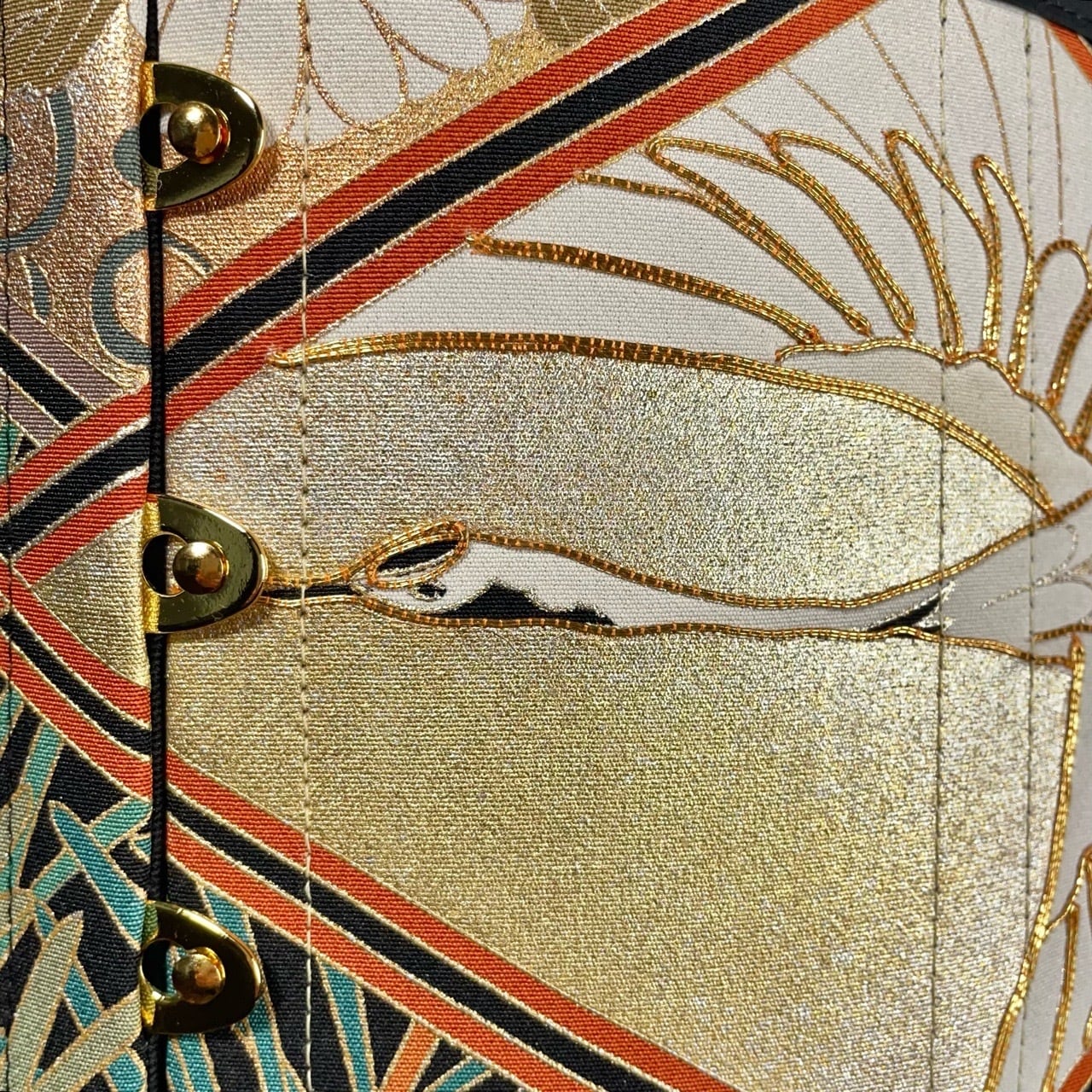 コルセット帯(鶴・黒留袖より制作)Corset Obi(Crane・Made of Kurotomesode-Kimono)