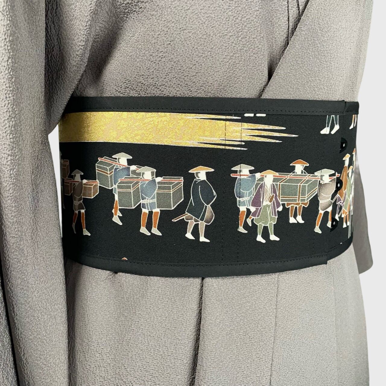 コルセット帯(大名行列・黒留袖より制作)Corset Obi(Daimyo's procession・Made of Kurotomesode-Kimono)