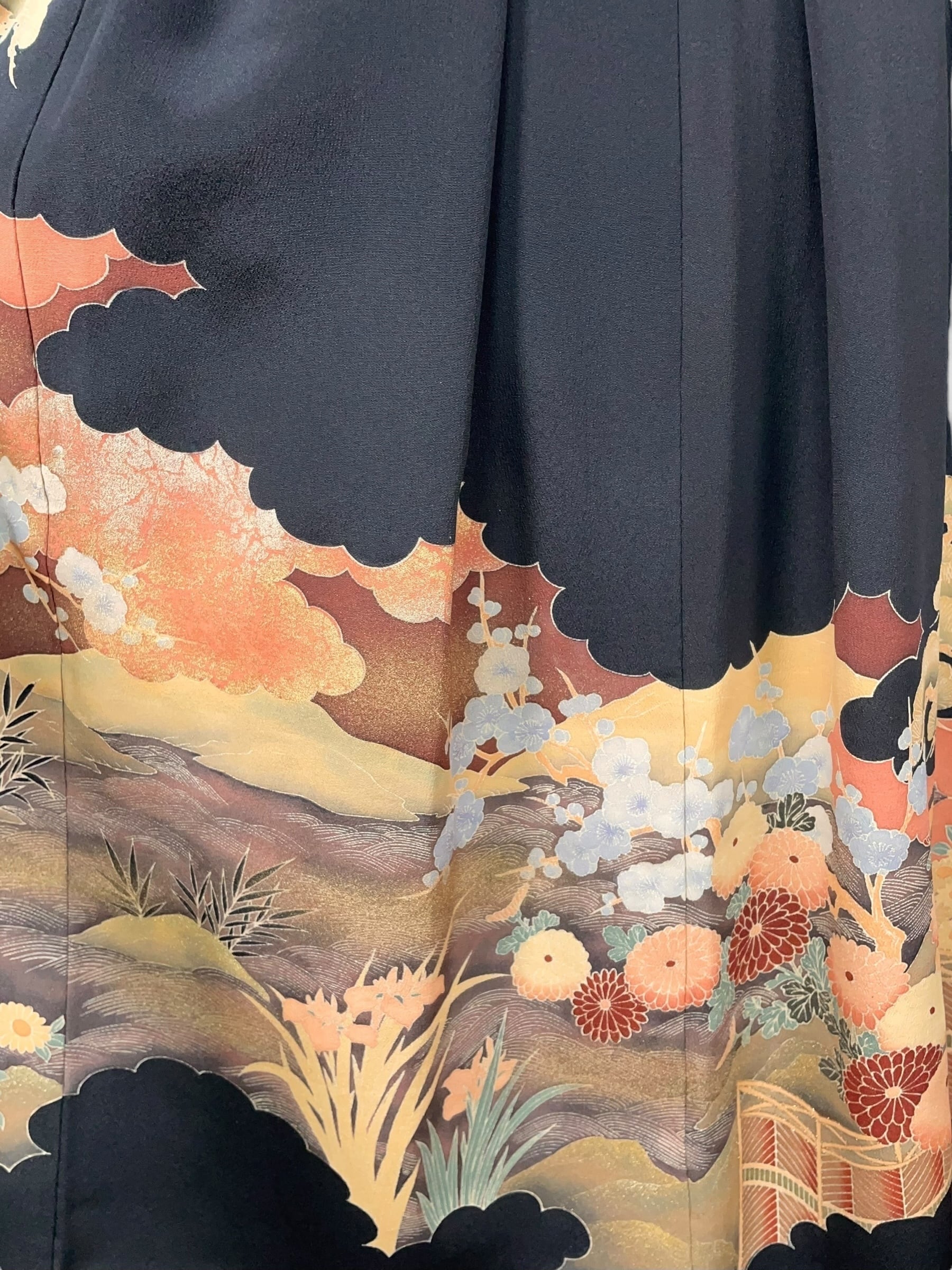 着物重ねスカート(黒留袖より制作) Kimono Overlay Skirt (Made of Kurotomesode-Kimono)
