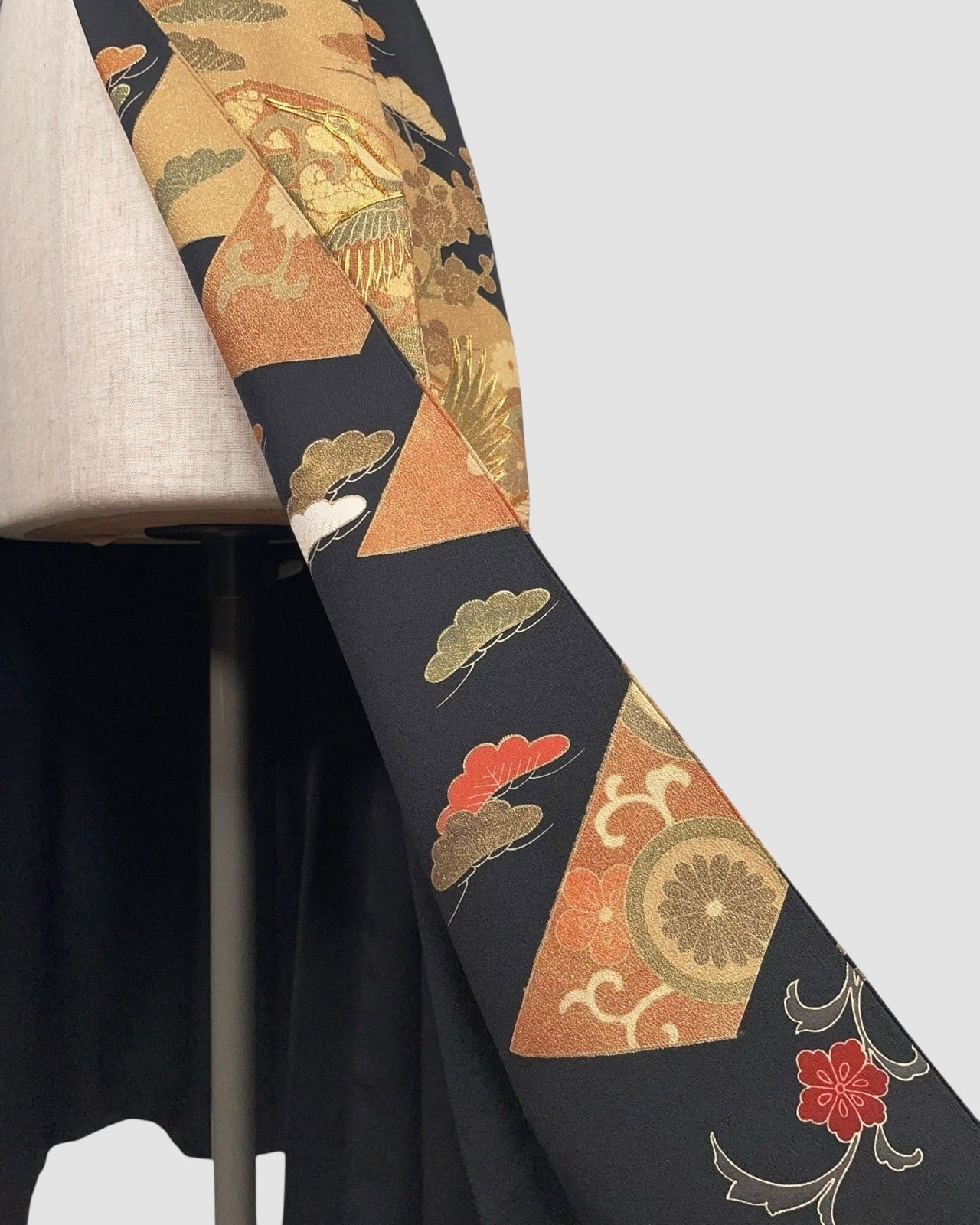 着物重ねスカート(黒留袖より制作) Kimono Overlay Skirt (Made of Kurotomesode-Kimono)