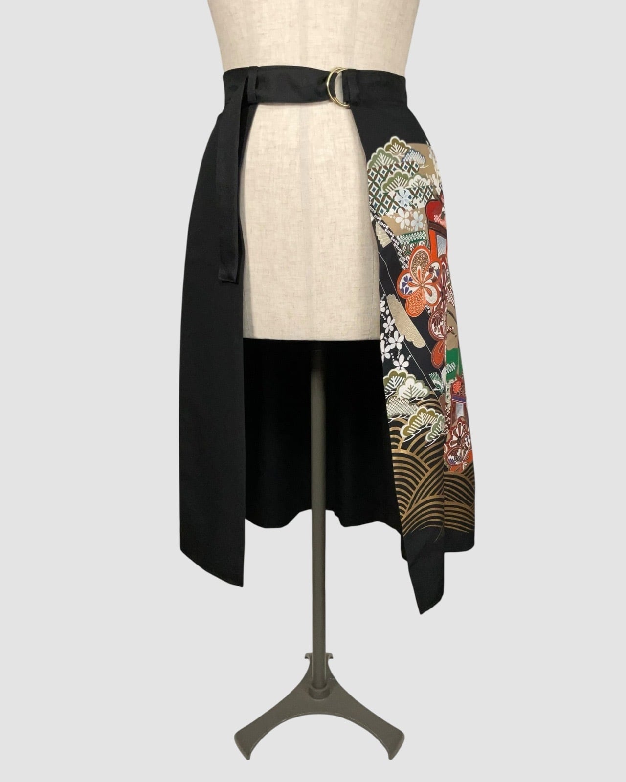 着物重ねスカート(黒留袖より制作) Kimono Overlay Skirt (Made of Kurotomesode-Kimono)
