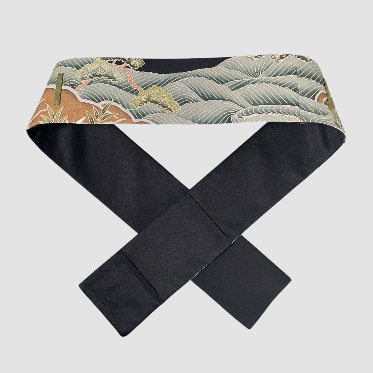 クロスオーバー帯ベルト(黒留袖より制作) Crossover Obi-belt(Made of Kurotomesode-Kimono)