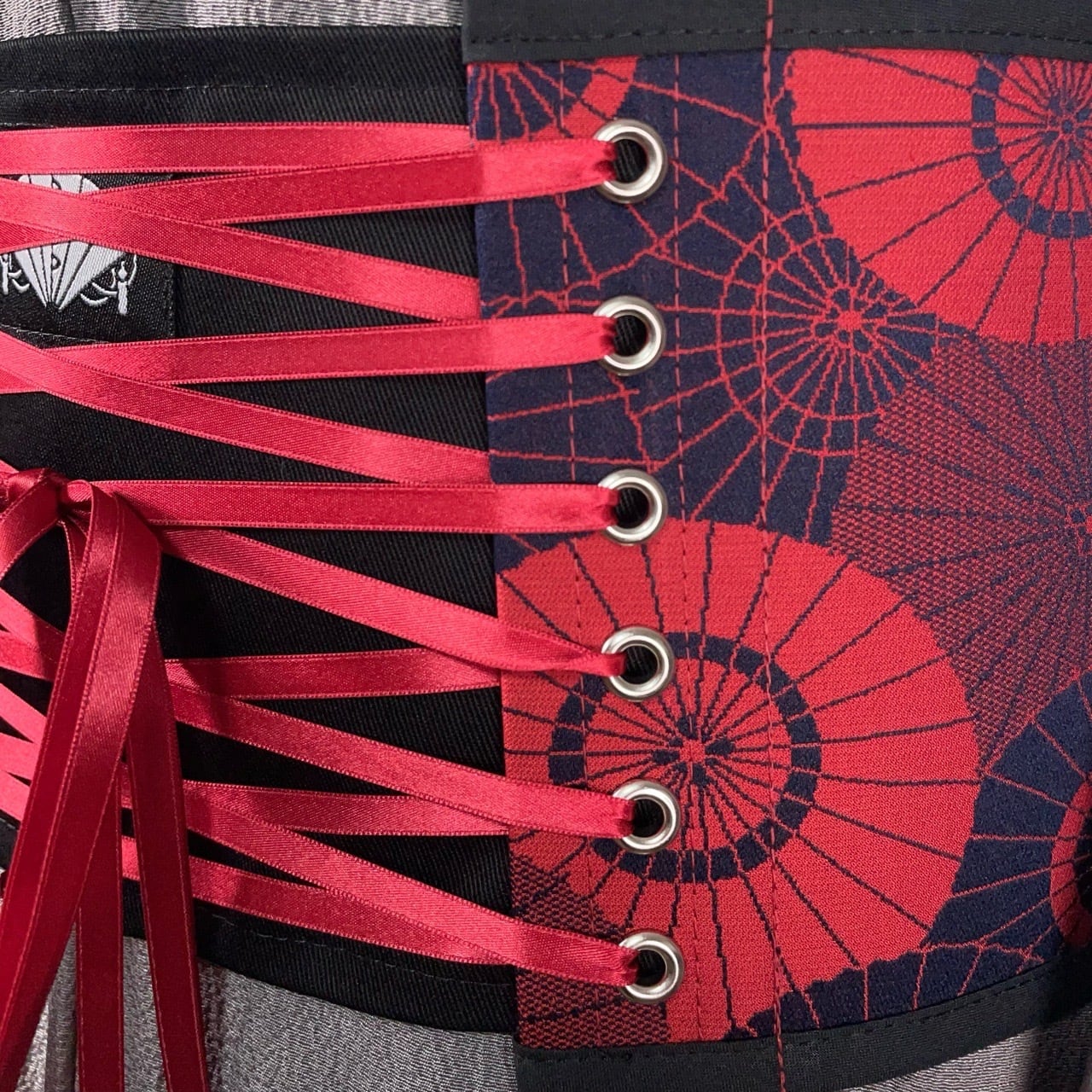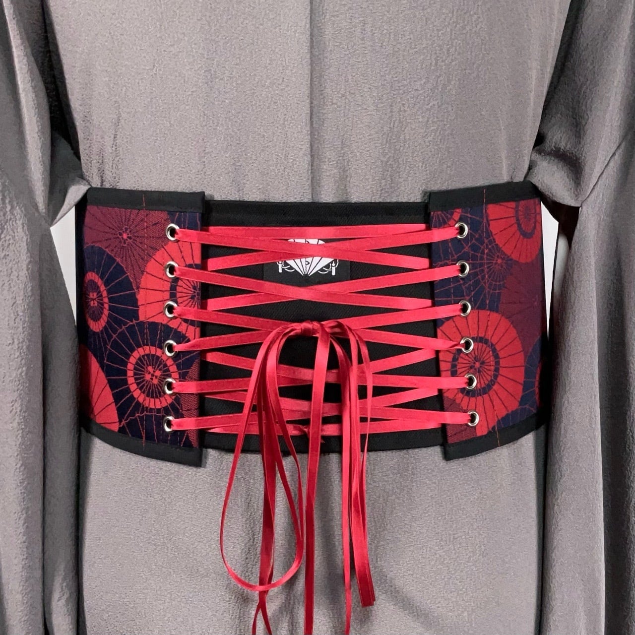 This is a simple corset-style obi for use with a kimono. Please consider the size of your waist when wearing a kimono, and with the small of your back held flat for this product.