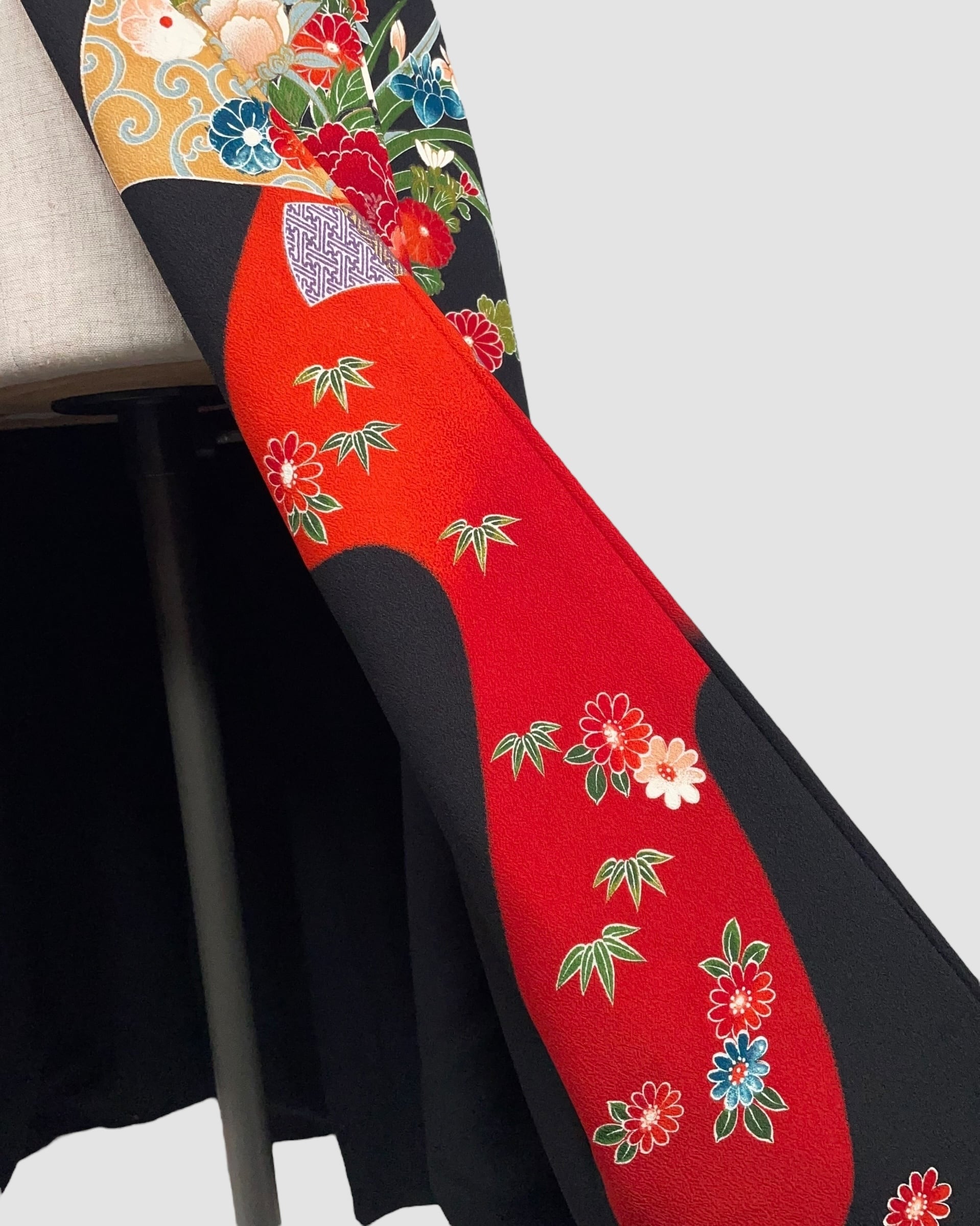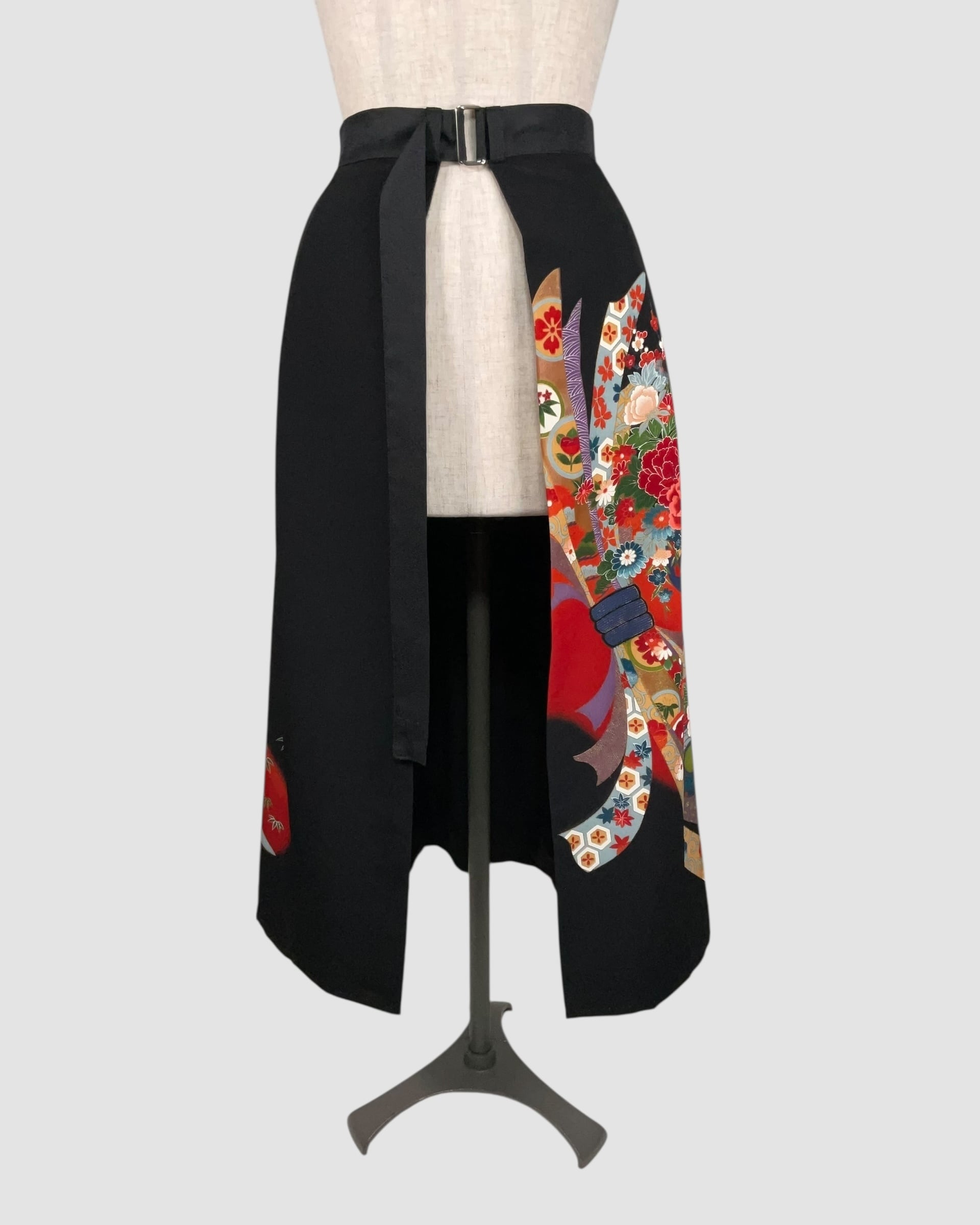 着物重ねスカート(黒留袖より制作) Kimono Overlay Skirt (Made of Kurotomesode-Kimono)