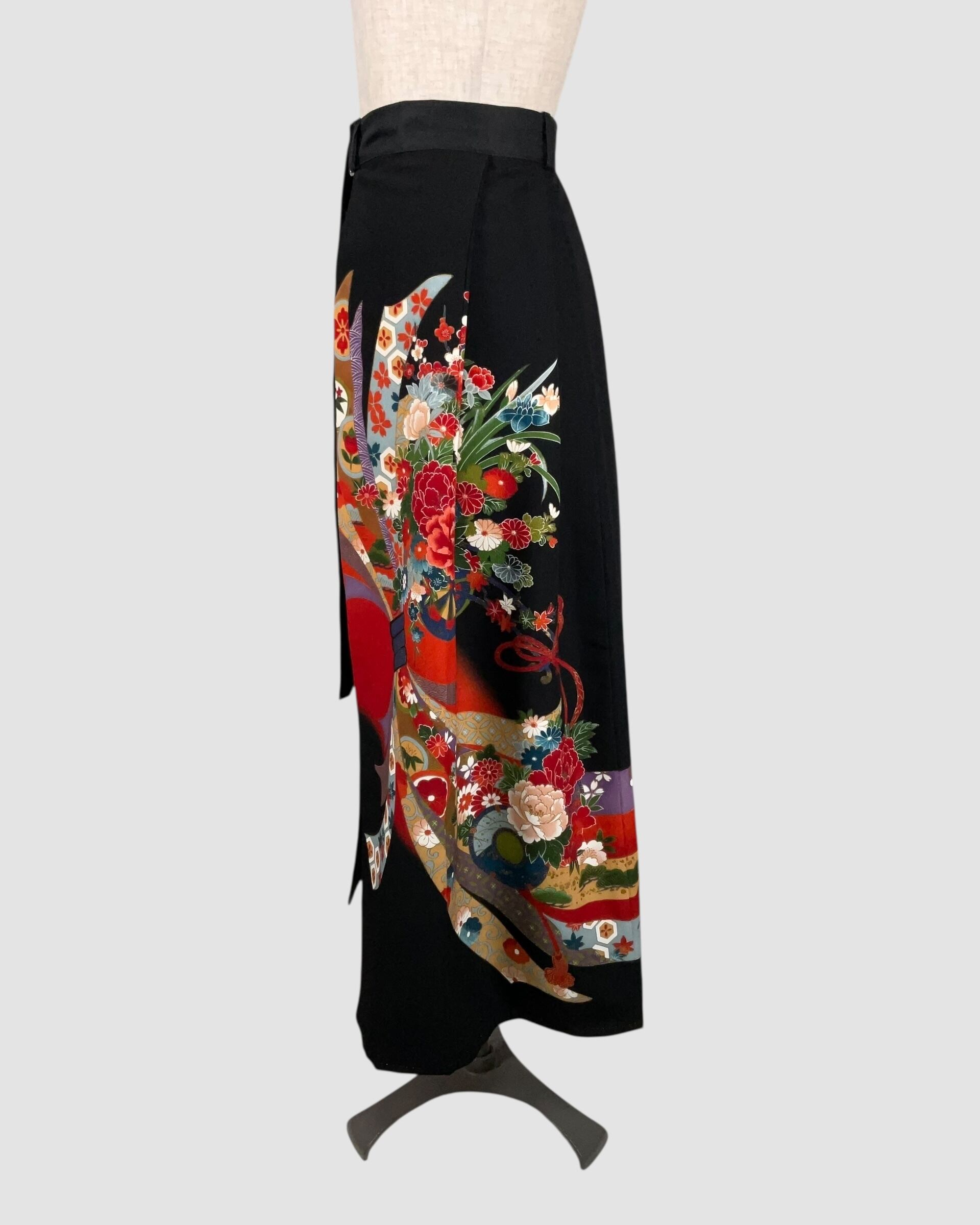 着物の裾部分を贅沢に使用した、柄の技巧や魅力を堪能できるスカートです。