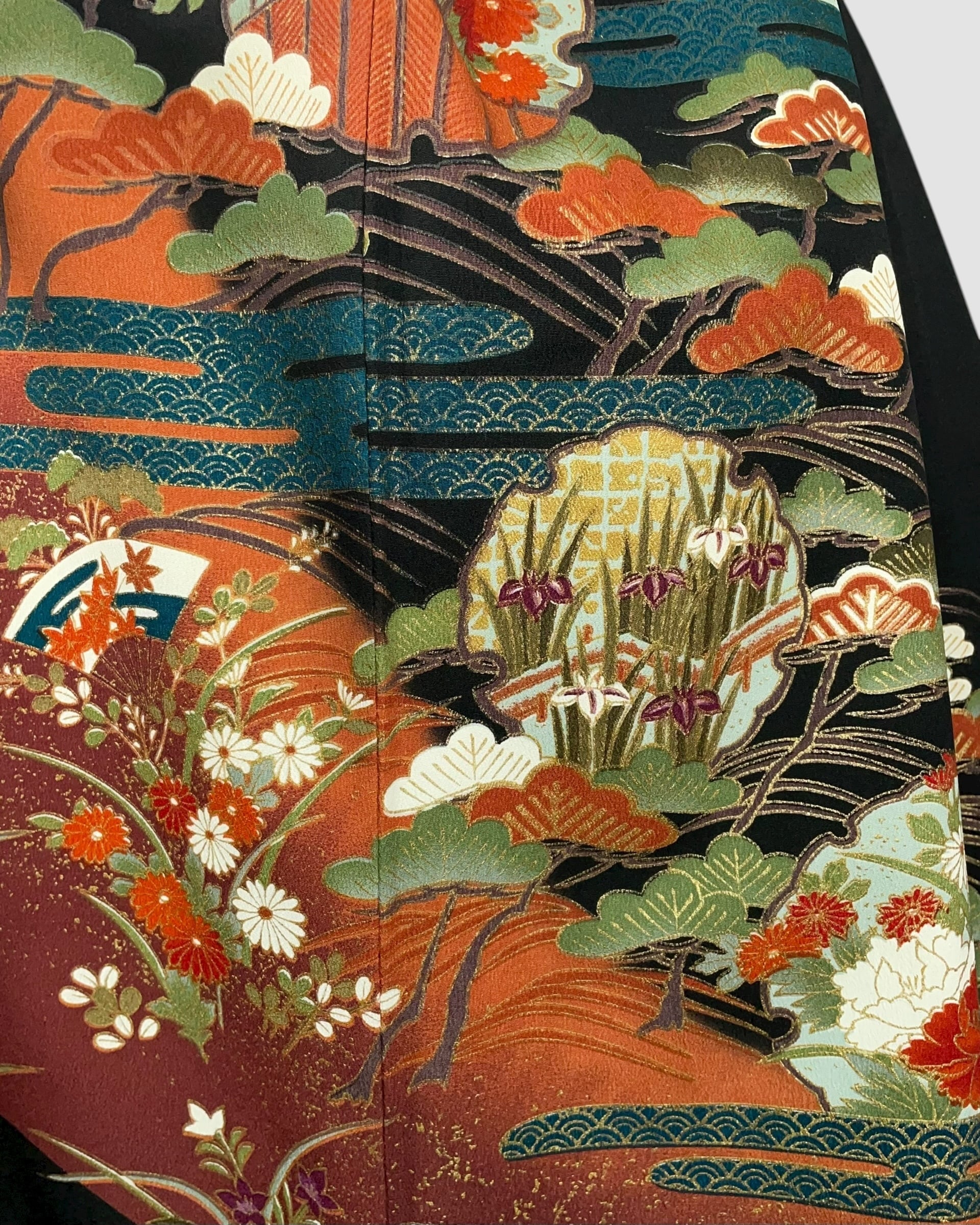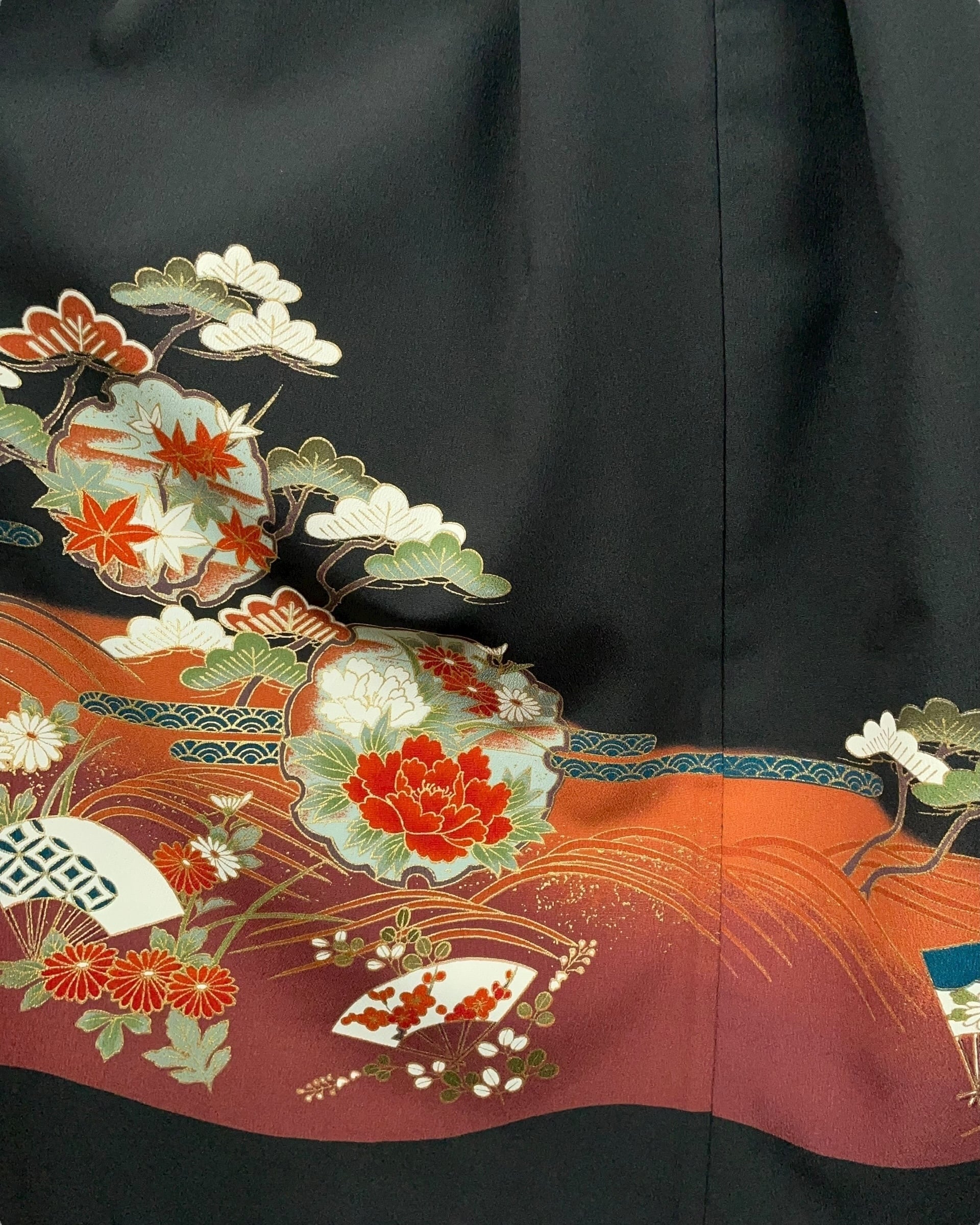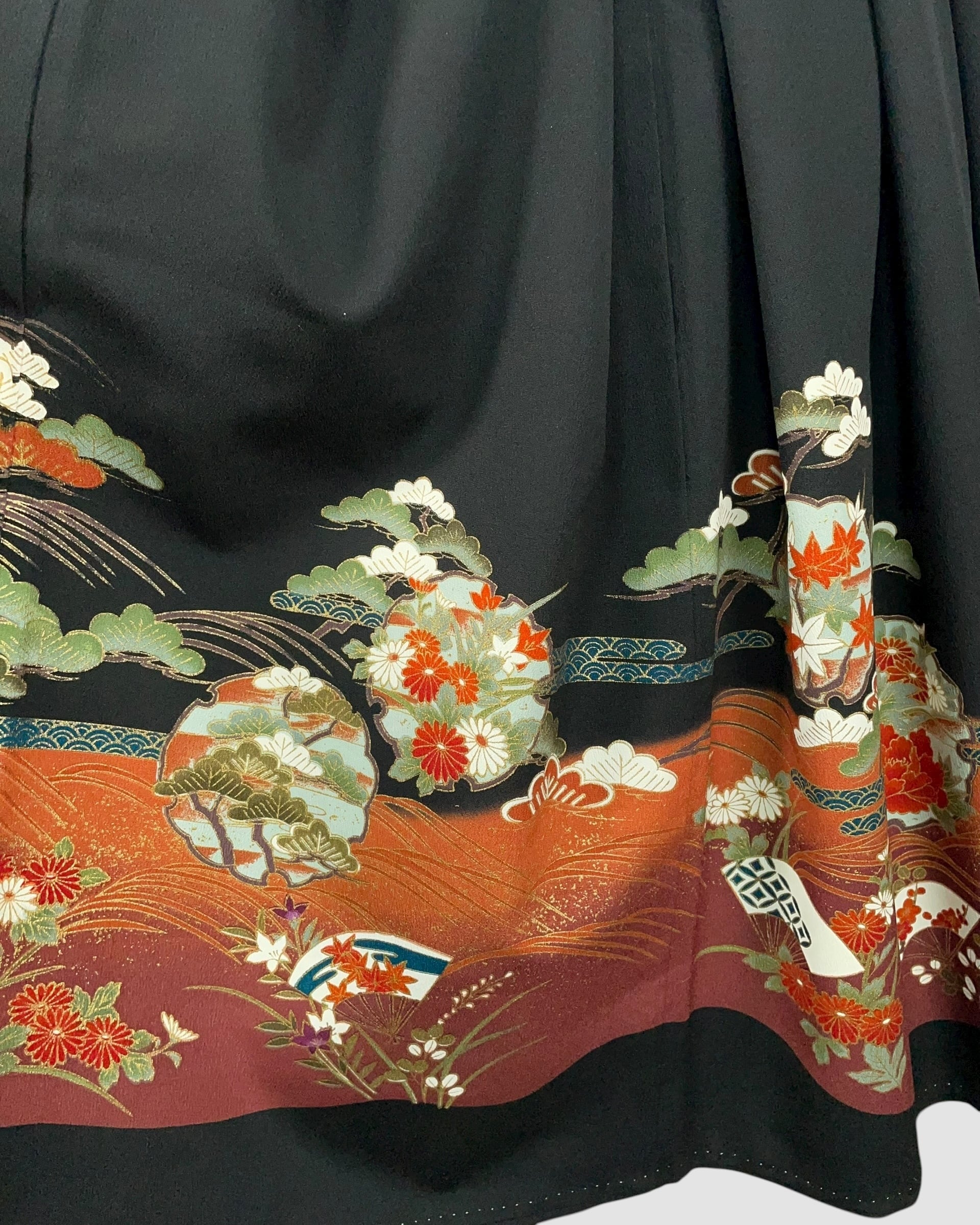 着物重ねスカート(黒留袖より制作) Kimono Overlay Skirt (Made of Kurotomesode-Kimono)