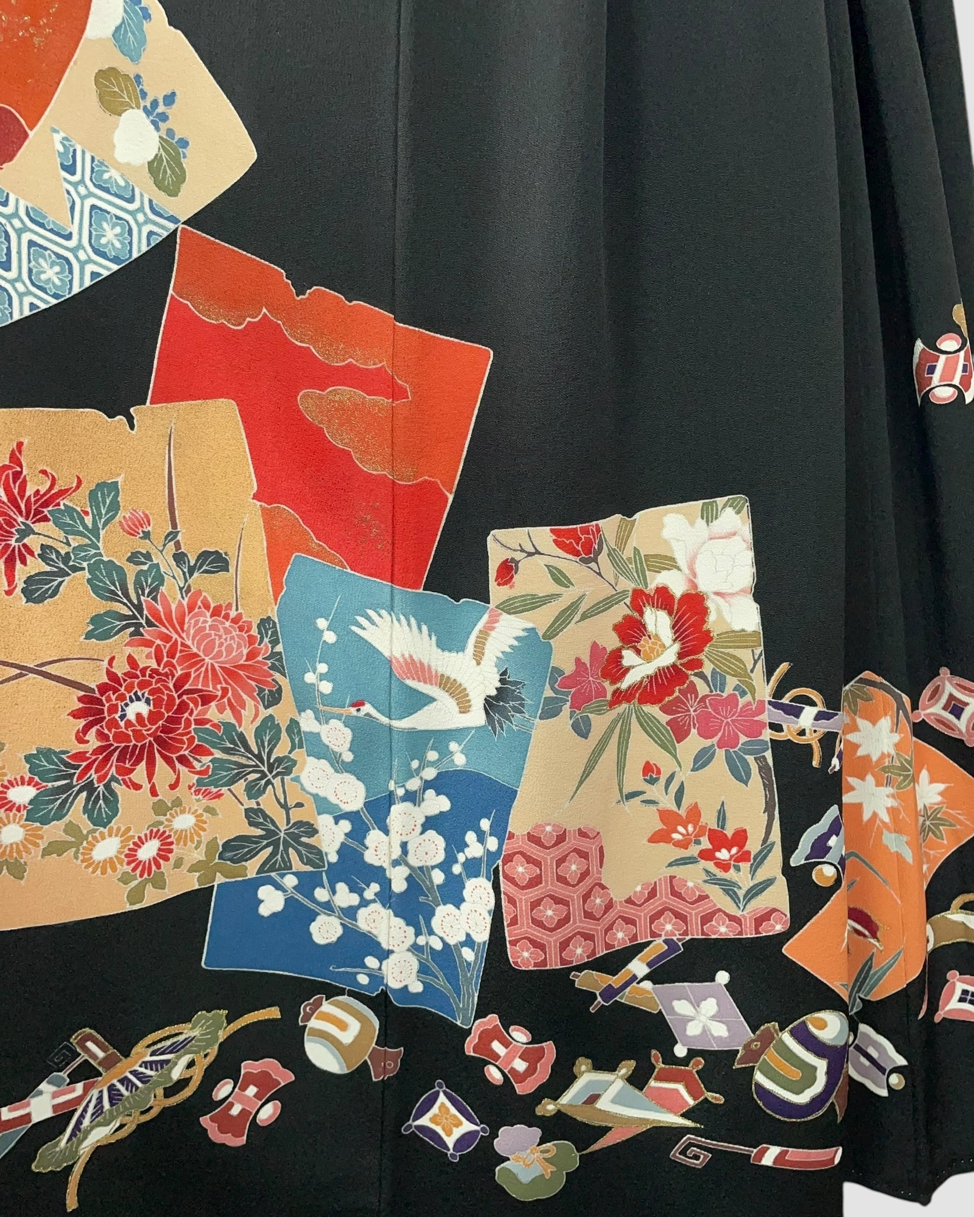 着物重ねスカート(黒留袖より制作) Kimono Overlay Skirt (Made of Kurotomesode-Kimono)