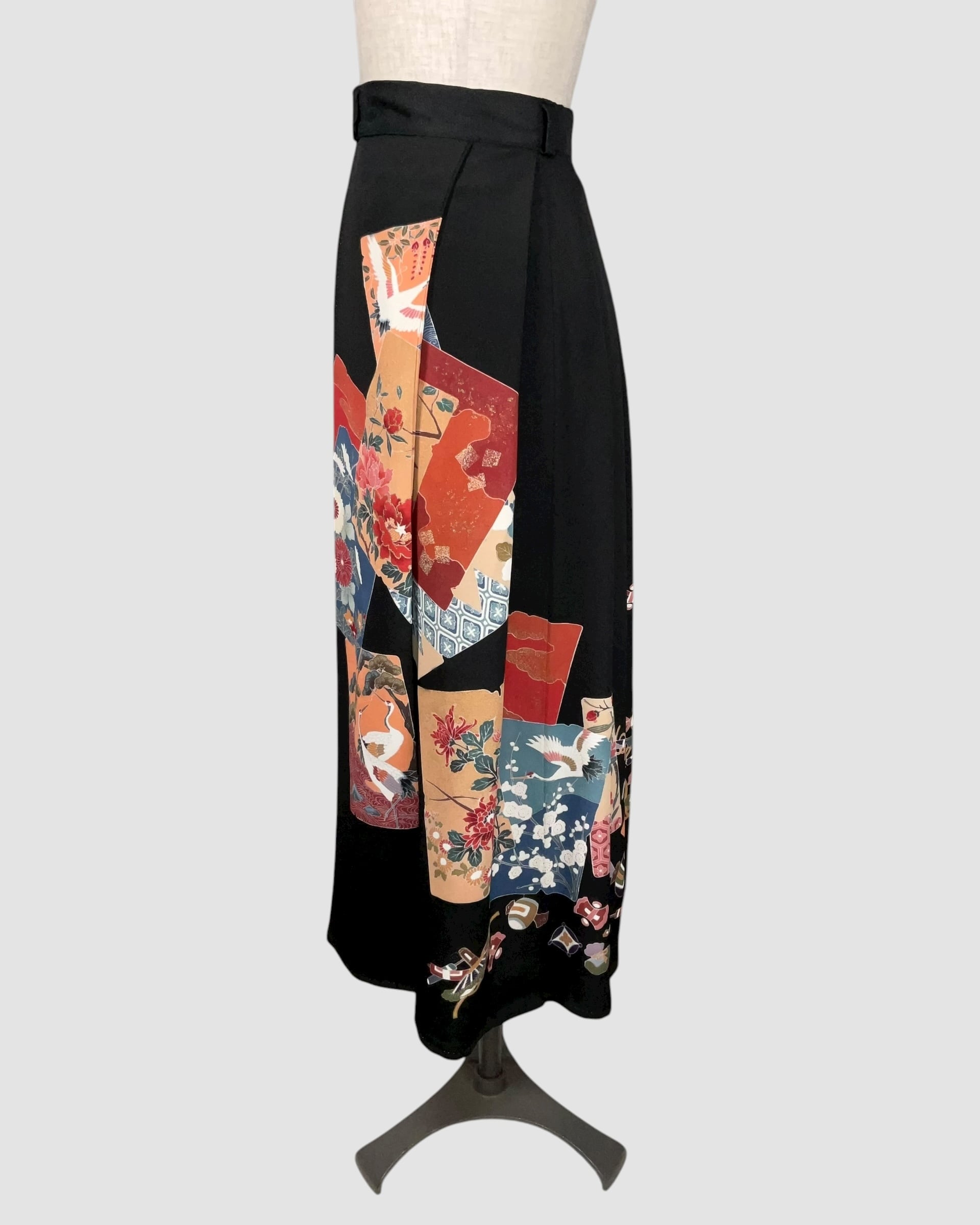 着物の裾部分を贅沢に使用した、柄の技巧や魅力を堪能できるスカートです。