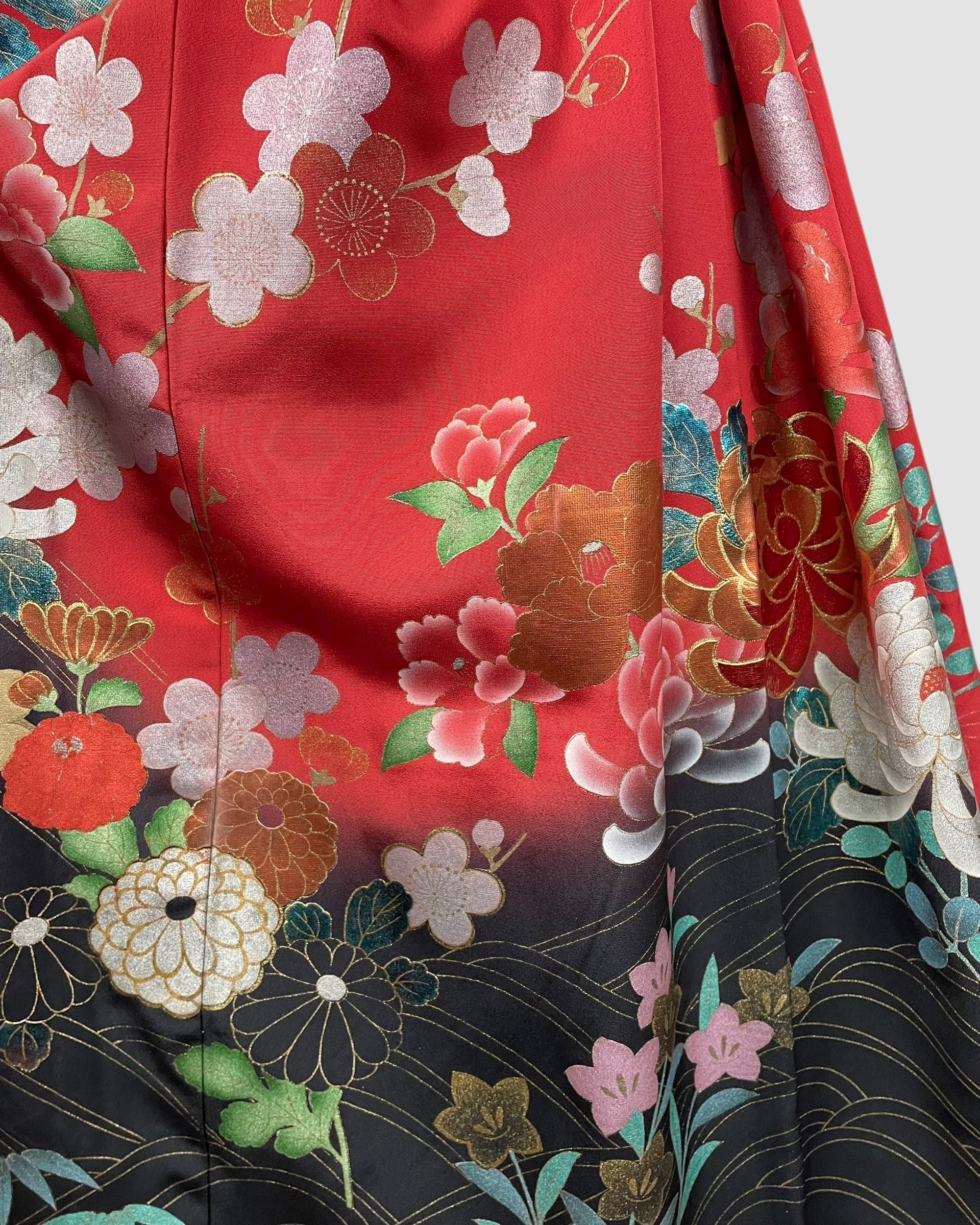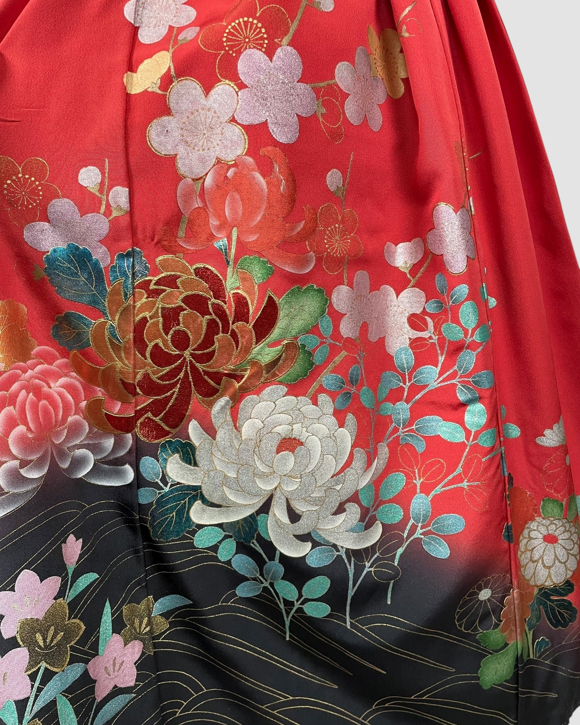 This skirt is made with a luxurious kimono hem, allowing you to enjoy the skill and charm imbued in the pattern.