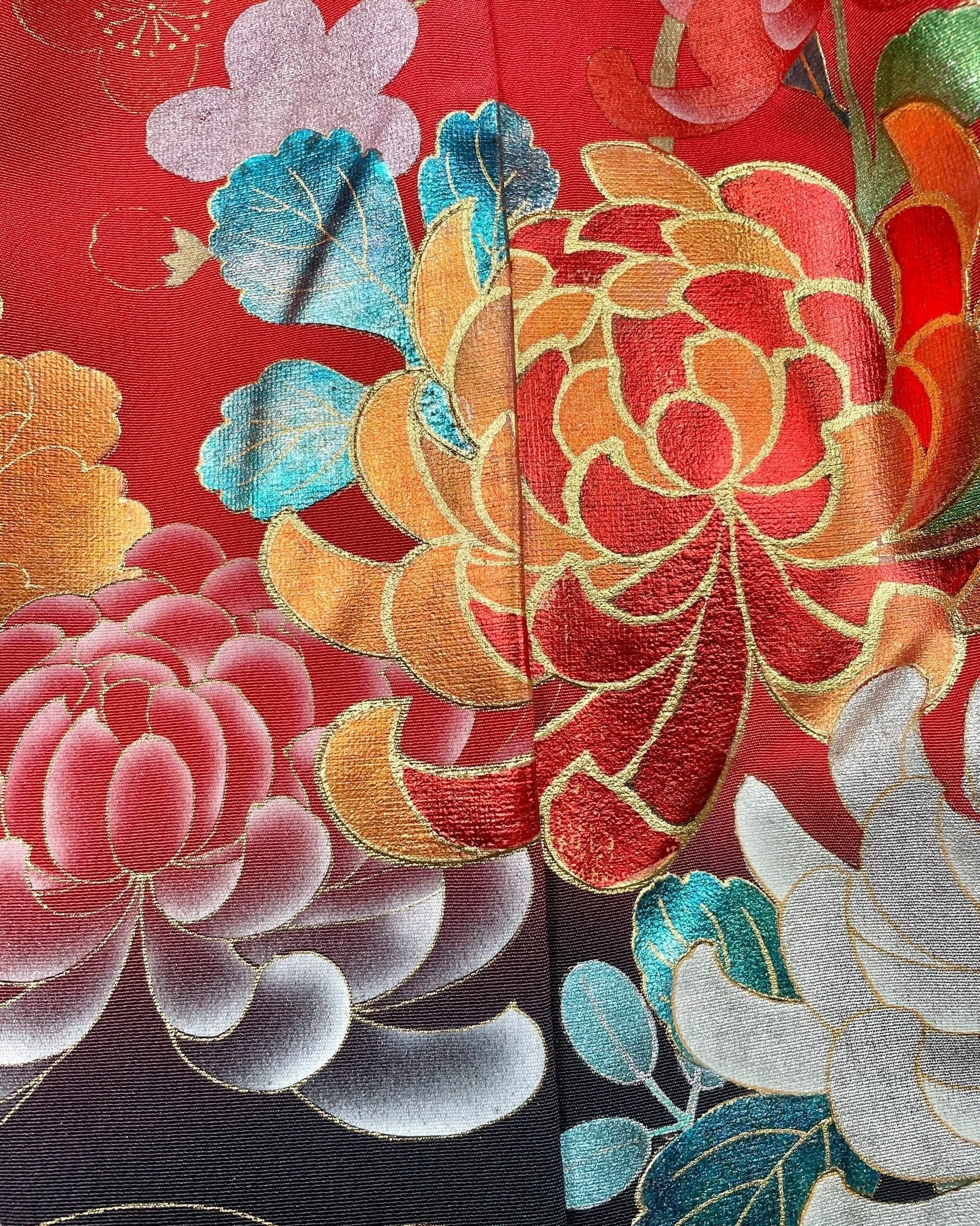 着物重ねスカート(振袖より制作) Kimono Overlay Skirt (Made of Furisode-Kimono)