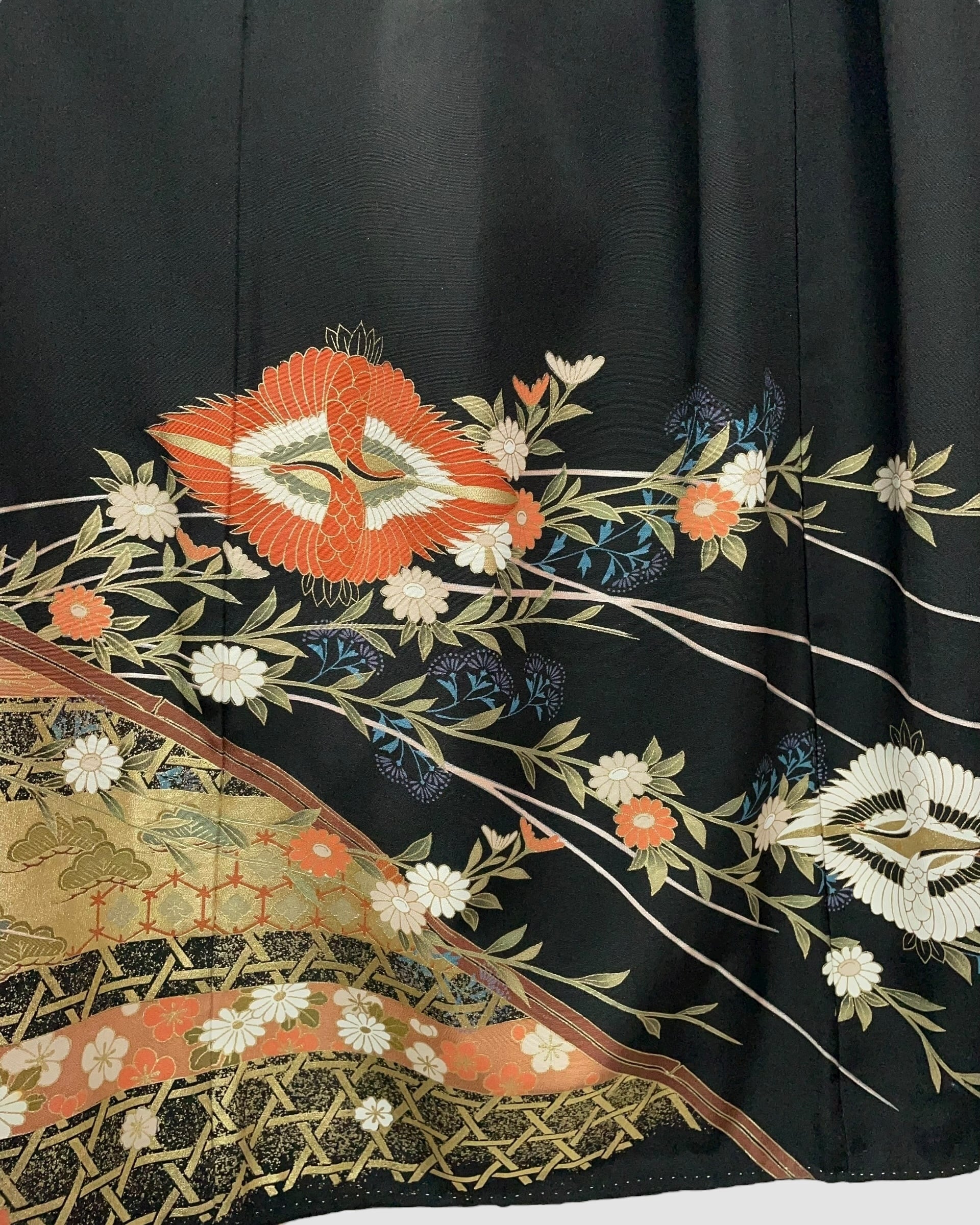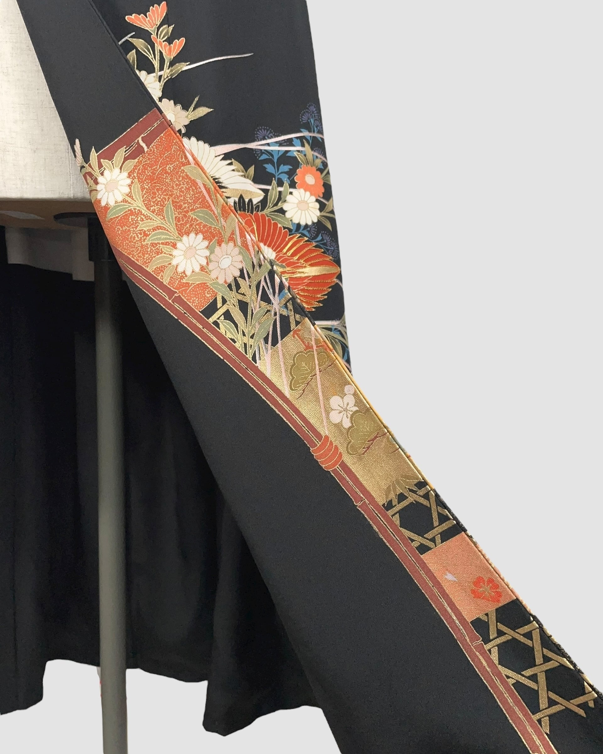 着物重ねスカート(黒留袖より制作) Kimono Overlay Skirt (Made of Kurotomesode-Kimono)