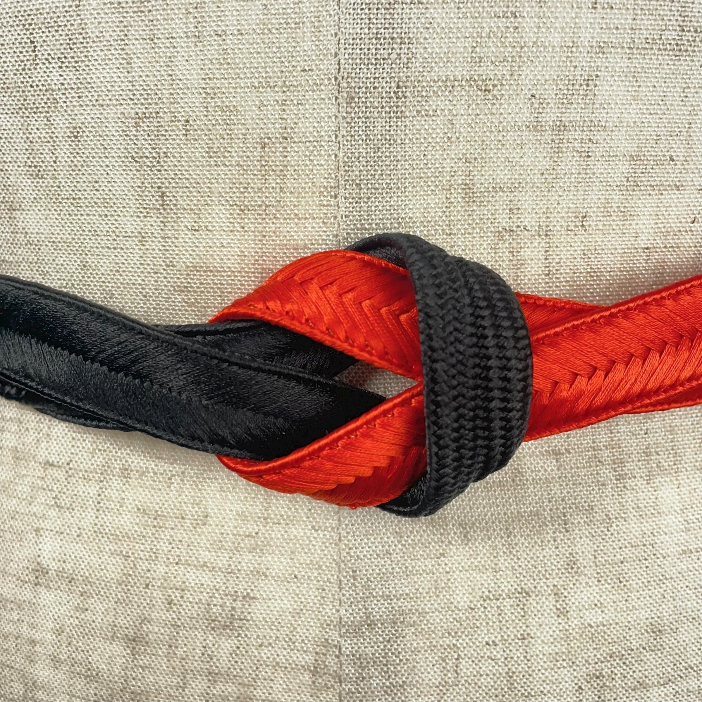 I’ve utilized the rich textures and unique design characteristics of the original obijime, while incorporating an adjustable elastic band and hook for ease of use.