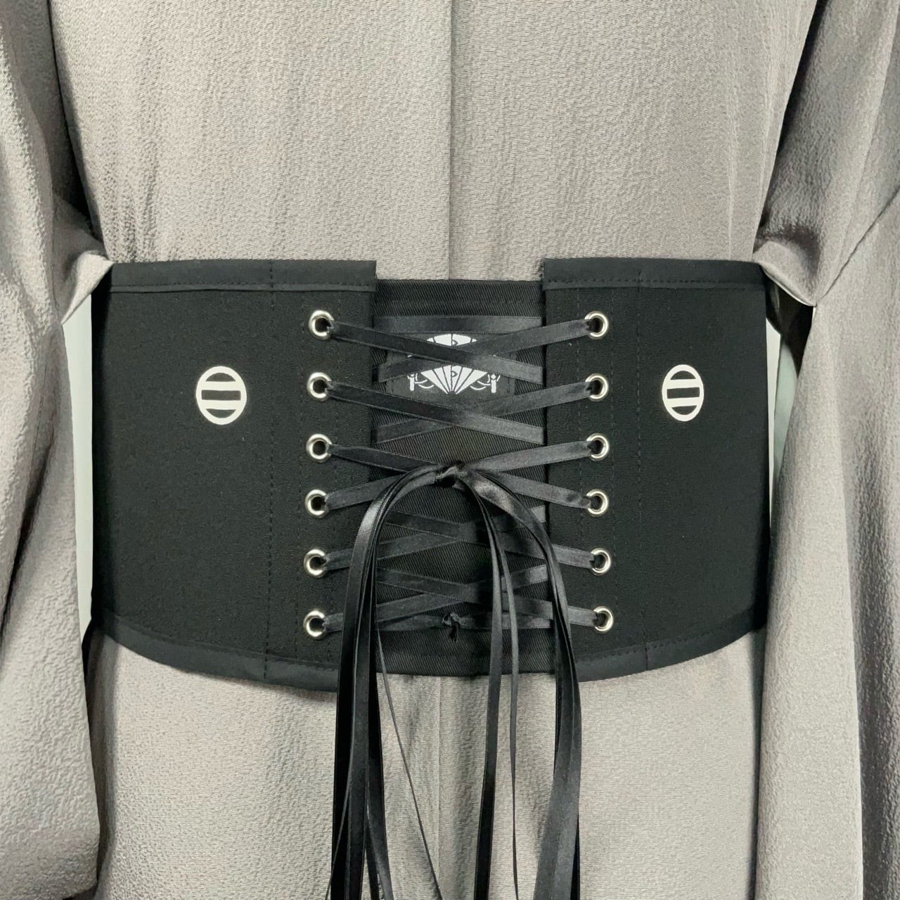 This is a simple corset-style obi for use with a kimono. Please consider the size of your waist when wearing a kimono, and with the small of your back held flat for this product.
