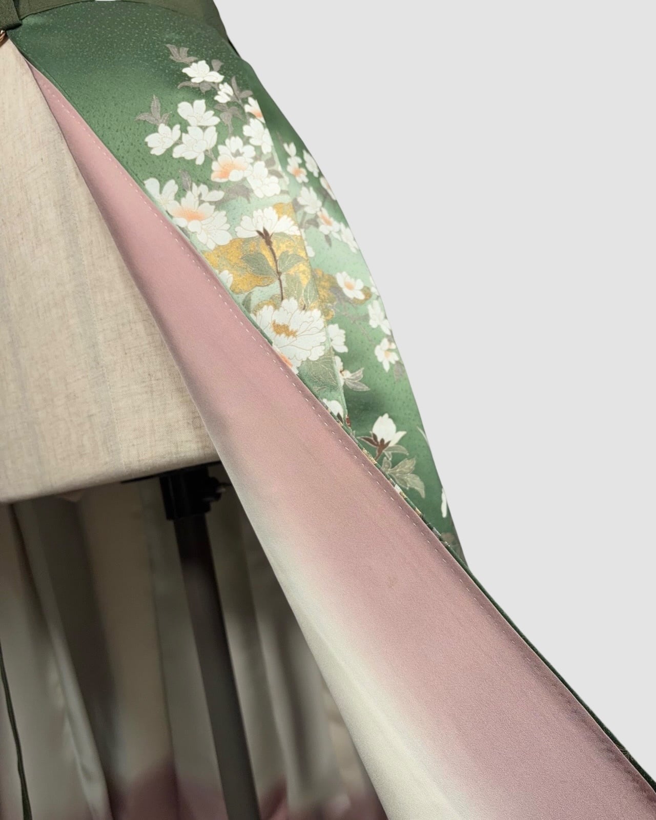 This skirt is made with a luxurious kimono hem, allowing you to enjoy the skill and charm imbued in the pattern.