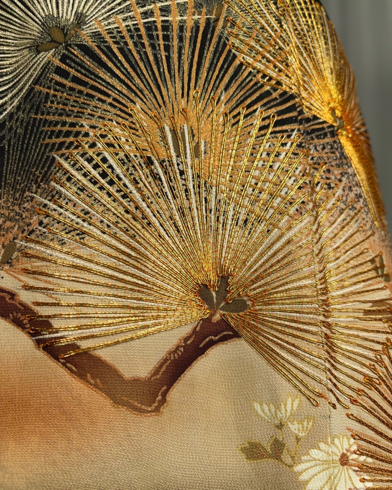 美しい柄行きのたっぷりとした生地が動きに合わせて優雅に揺れ、余韻を残します。