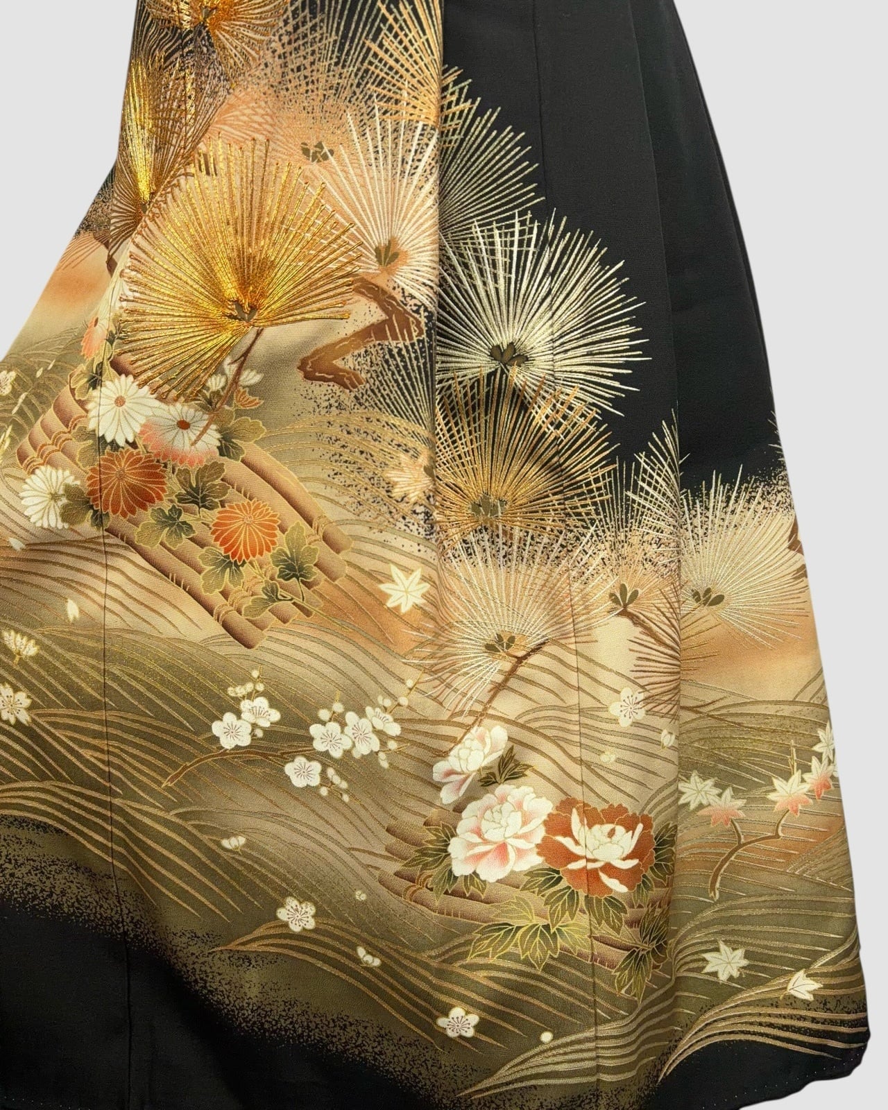 This skirt is made with a luxurious kimono hem, allowing you to enjoy the skill and charm imbued in the pattern.