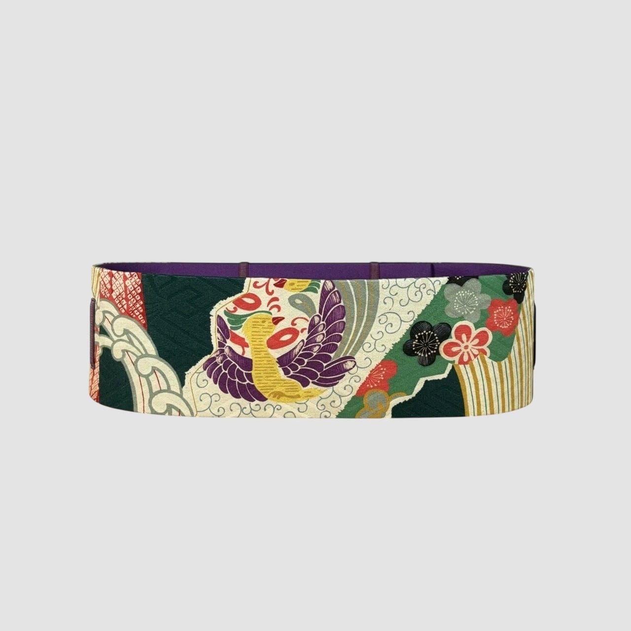 着物や帯から作られ、お手持ちの細ベルトや帯締めを通してお使い頂くベルトです。