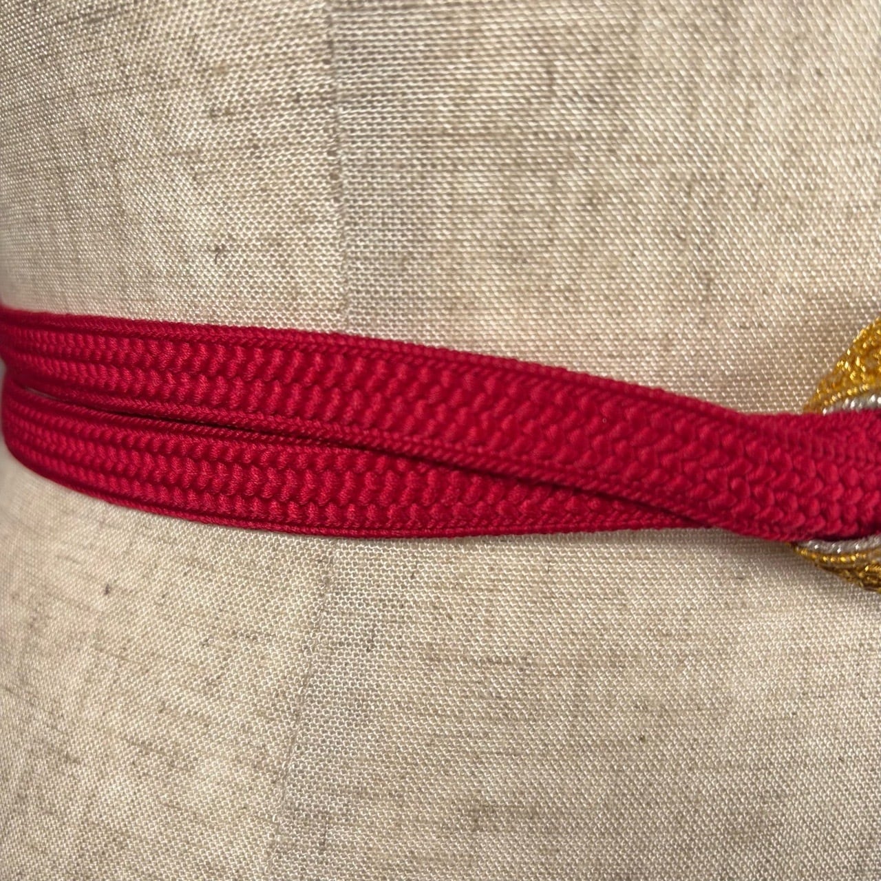 *使用する帯締の硬さや幅により、ベルトに仕立てた時の収まりを優先して、本結びか寿結びを選択しております。
