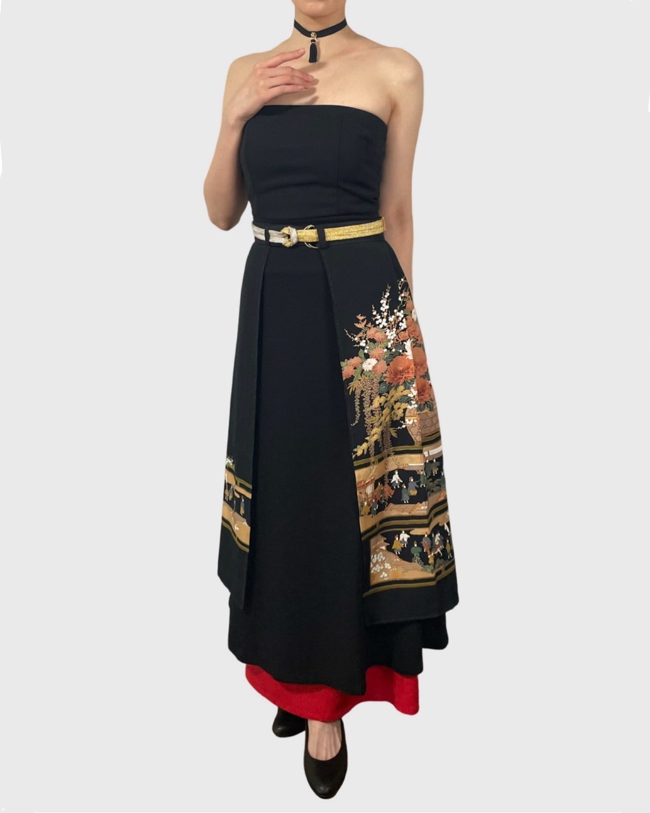 着物重ねスカート(黒留袖より制作) Kimono Overlay Skirt (Made of Kurotomesode-Kimono)