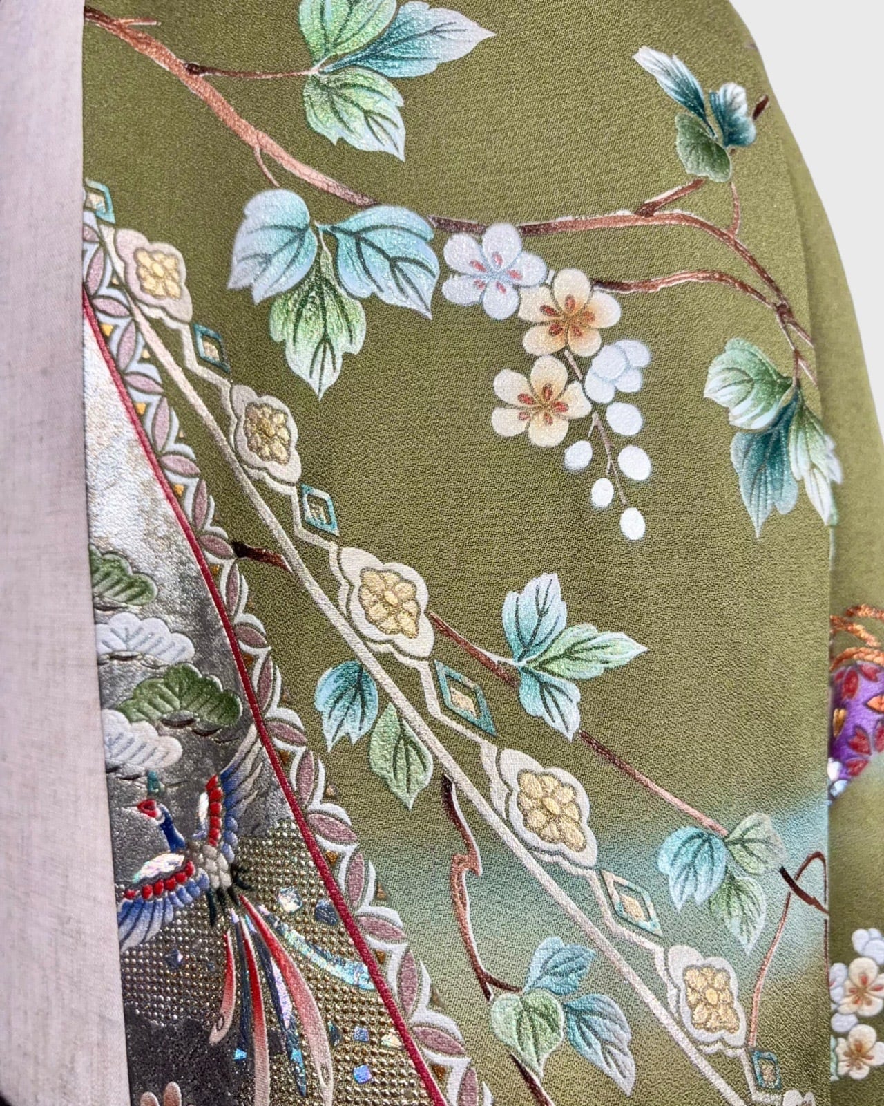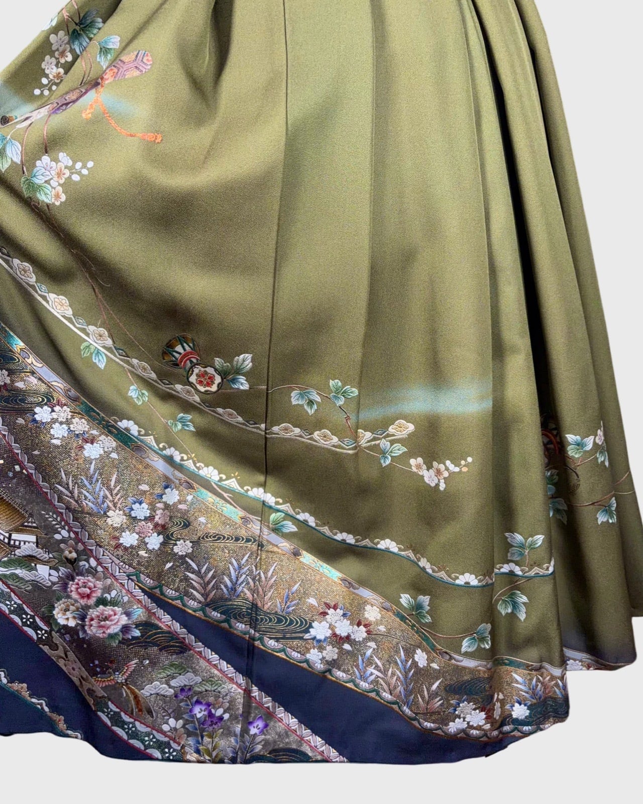 This skirt is made with a luxurious kimono hem, allowing you to enjoy the skill and charm imbued in the pattern.