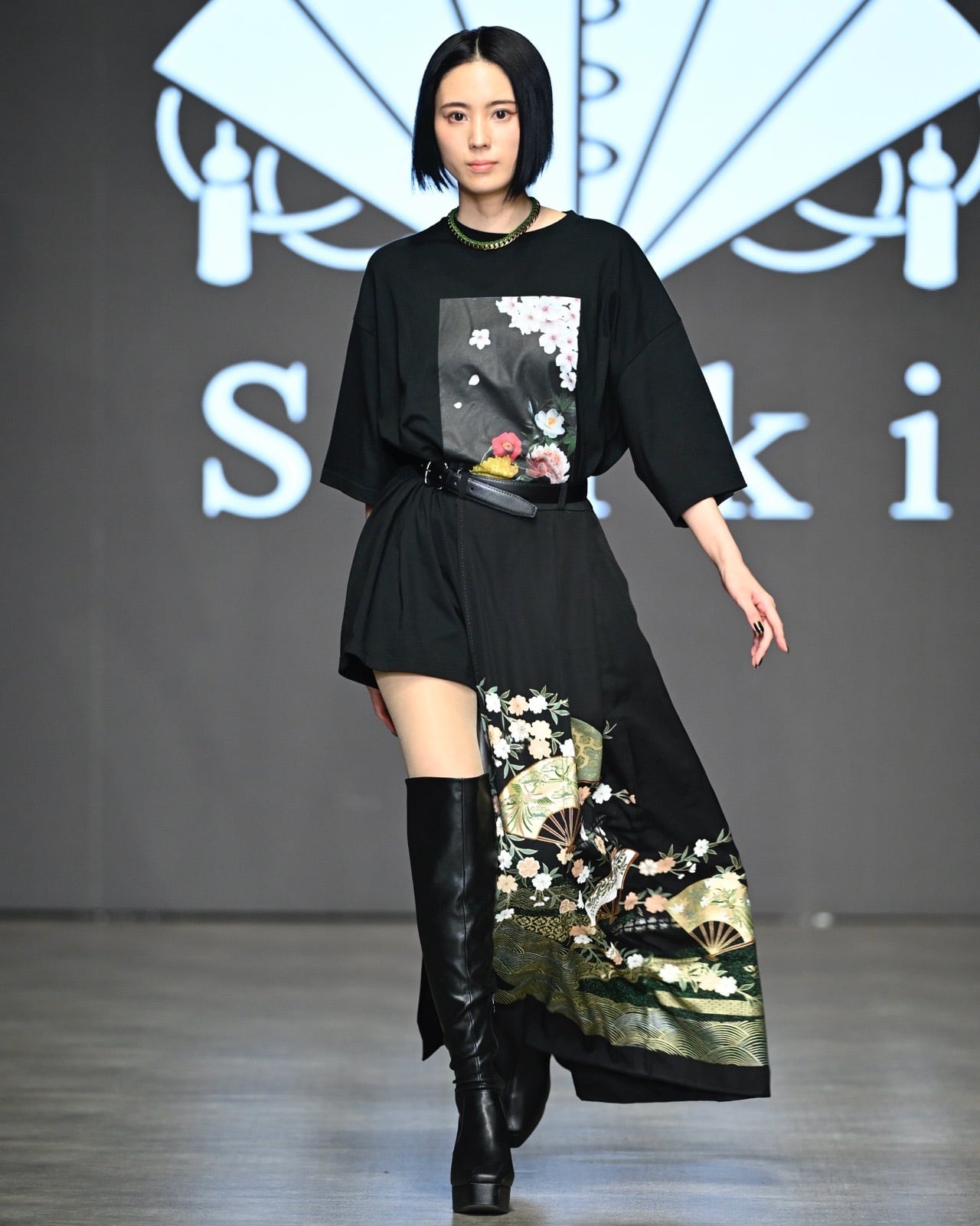 美しい柄行きのたっぷりとした生地が動きに合わせて優雅に揺れ、余韻を残します。