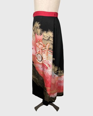 着物の裾部分を贅沢に使用した、柄の技巧や魅力を堪能できるスカートです。