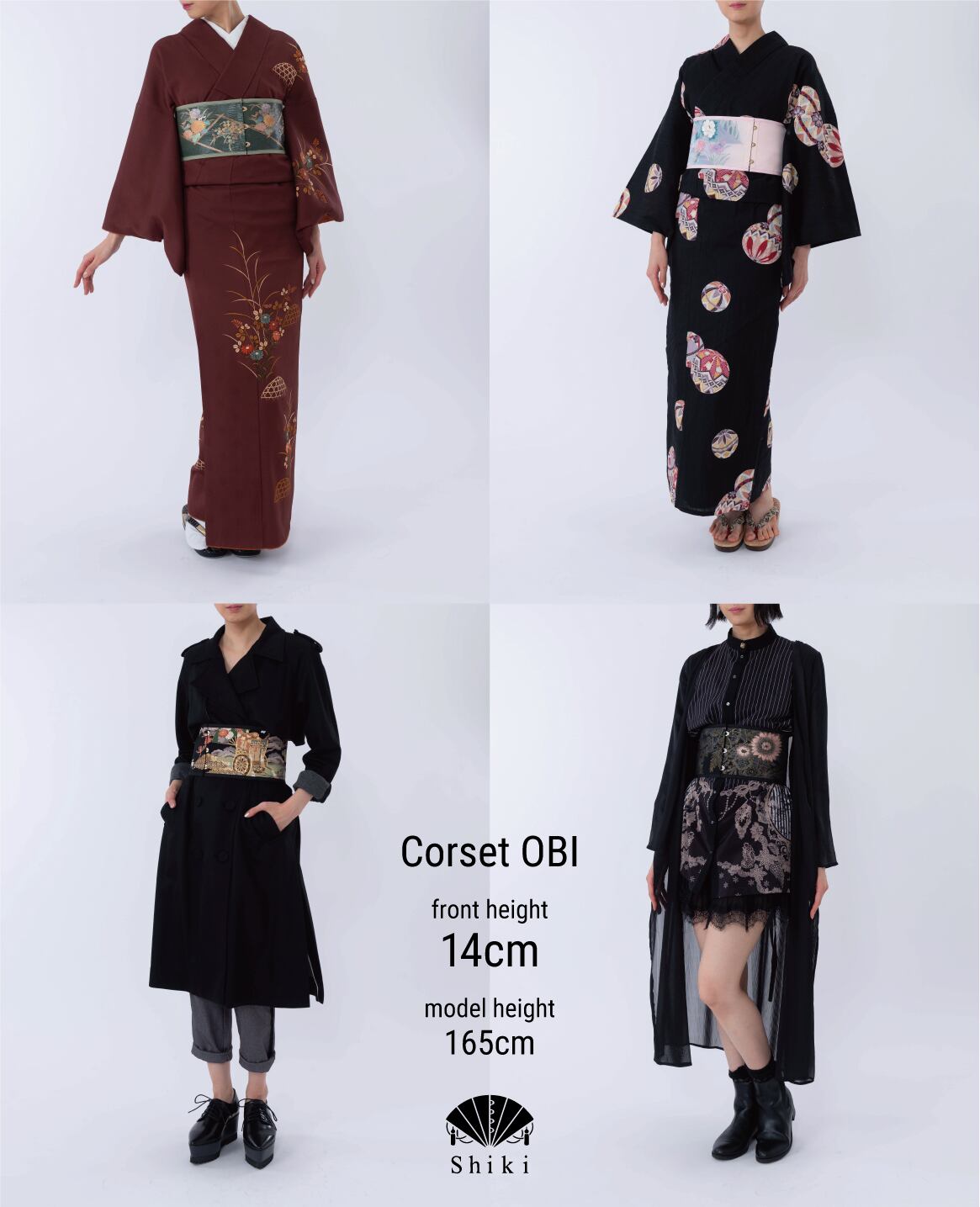 This is a simple corset-style obi for use with a kimono. Please consider the size of your waist when wearing a kimono, and with the small of your back held flat for this product.