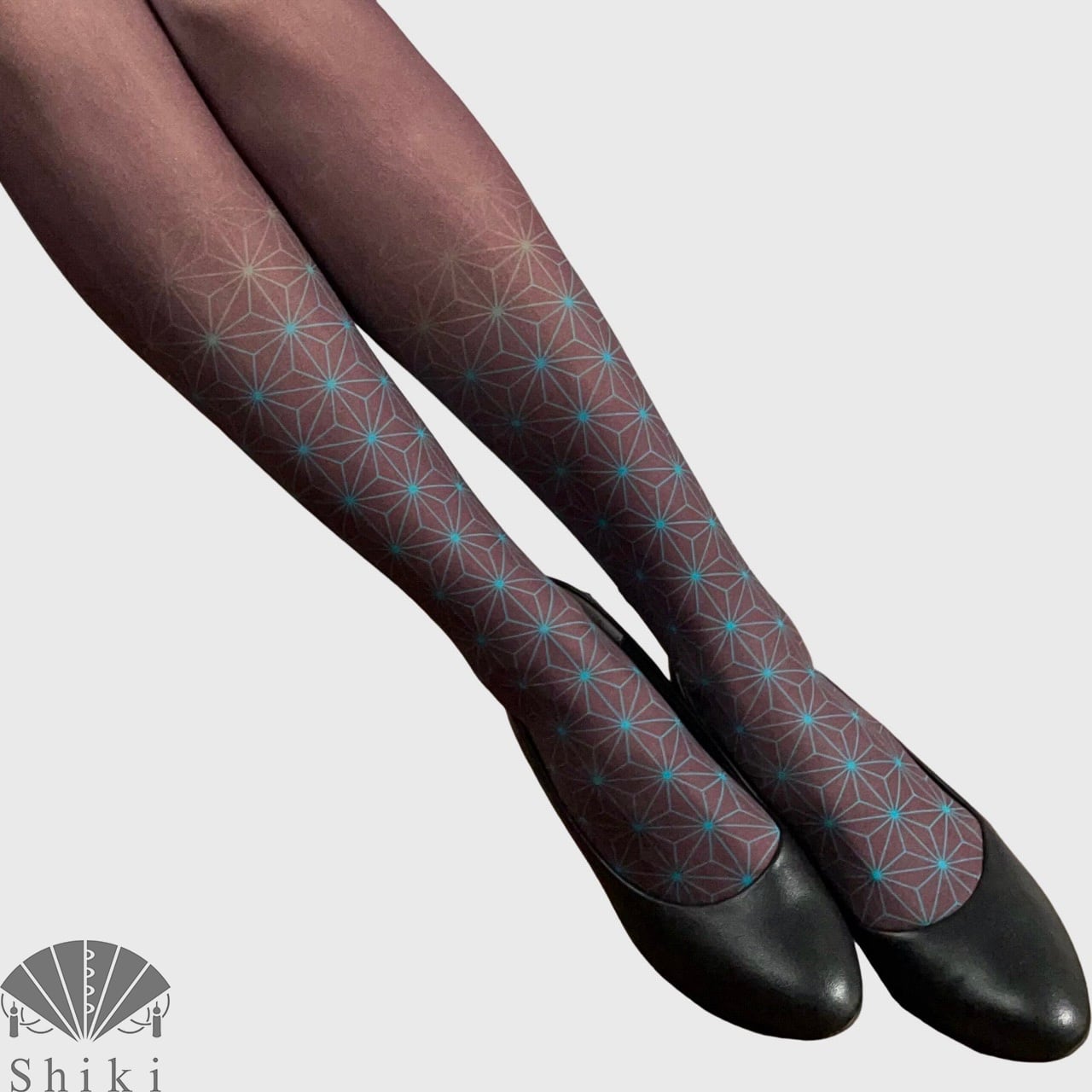 麻の葉文様タイツ〈蘇芳×浅葱〉Asanoha Pattern Tights<Raspberry×Bondi Blue>